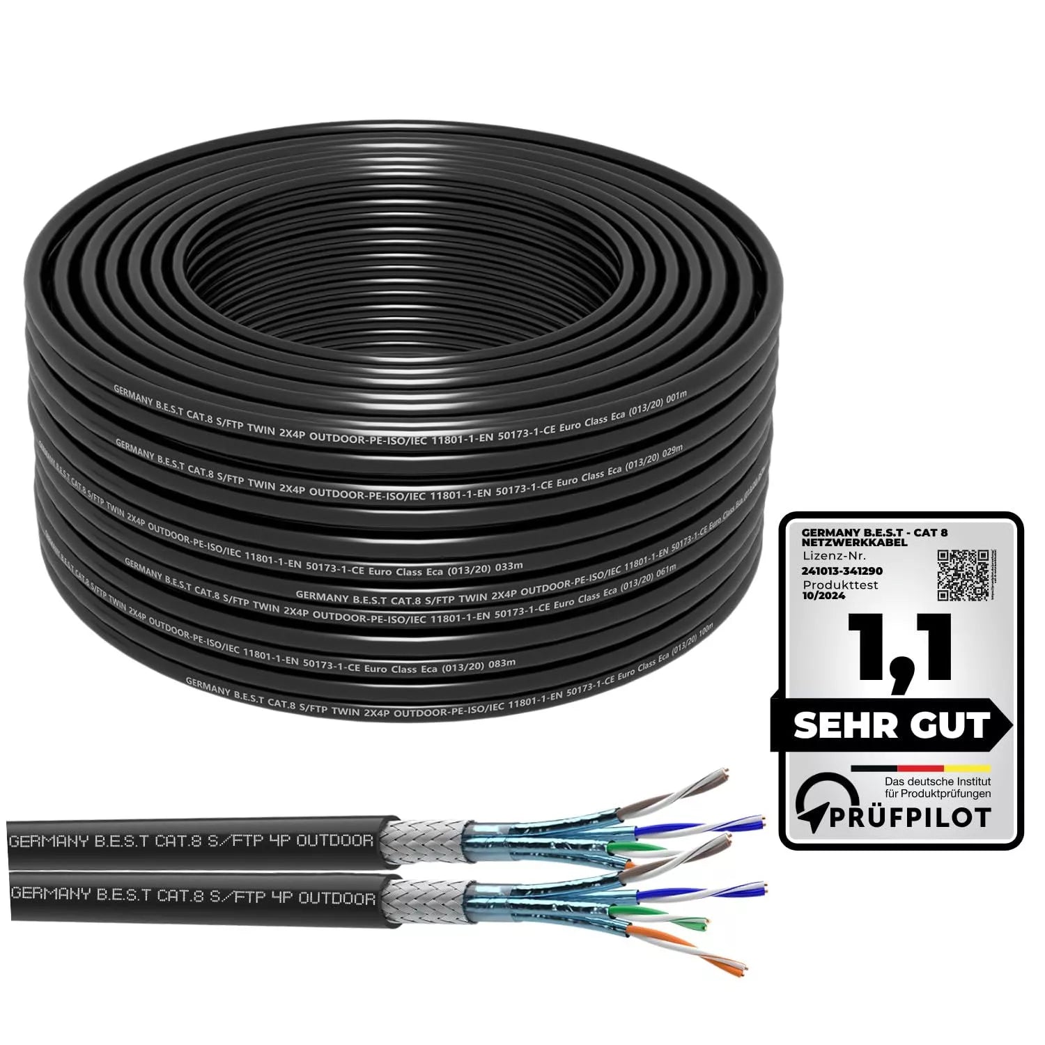 - Germany B.e.s.t Cat.8 Outdoor (Class I) 2000MHz LAN-Verlege-Netzwerkkabel: Zuverlässige Hochleistung für Ihr Netzwerk