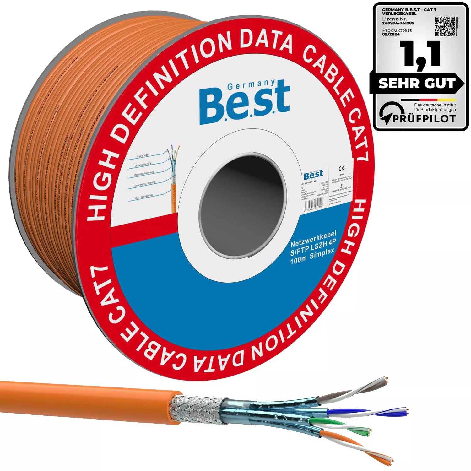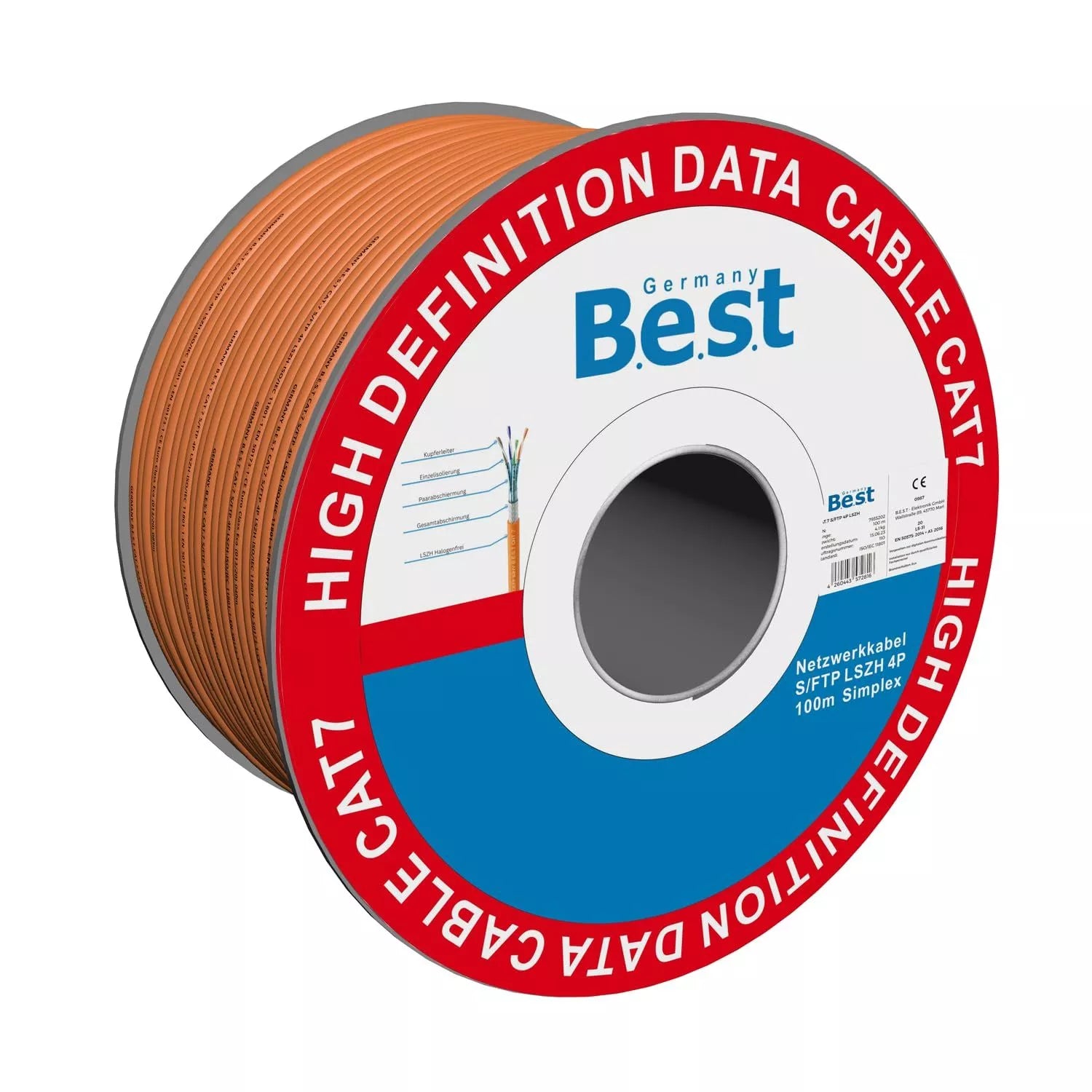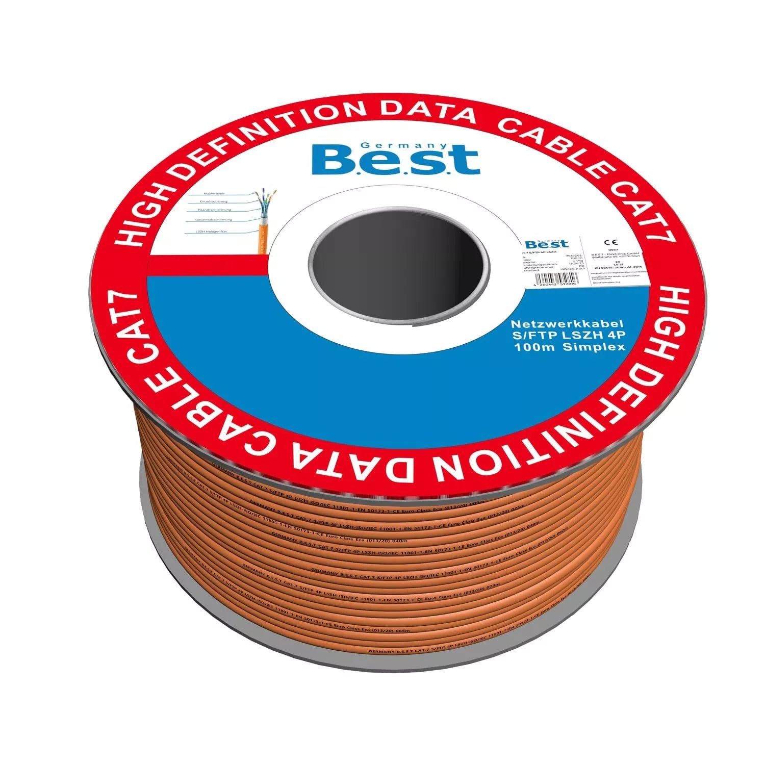 Germany B.e.s.t CAT.7 100m Simplex Verlegekabel BEST Gigabit Netzwerkkabel KUPFER Halogenfrei PIMF POE 10Gbit