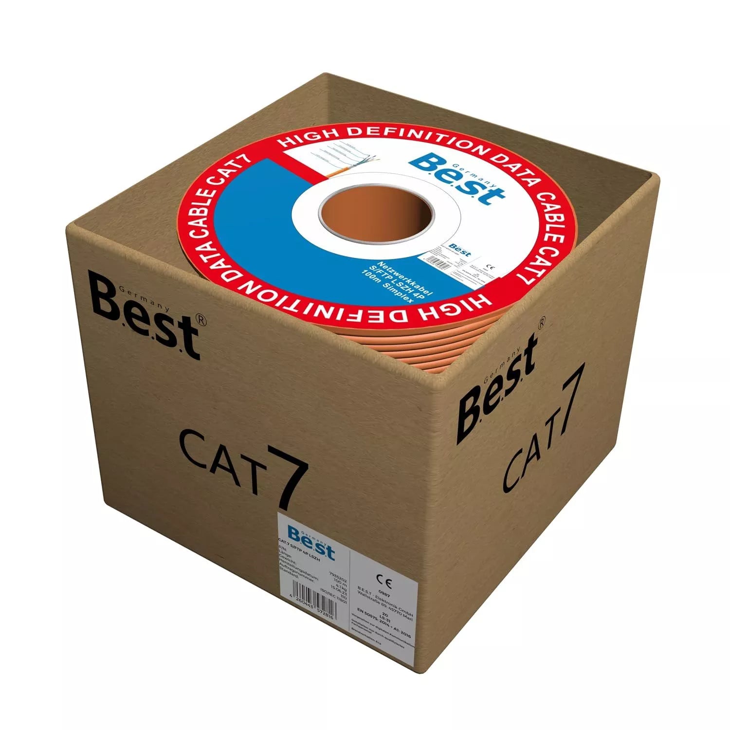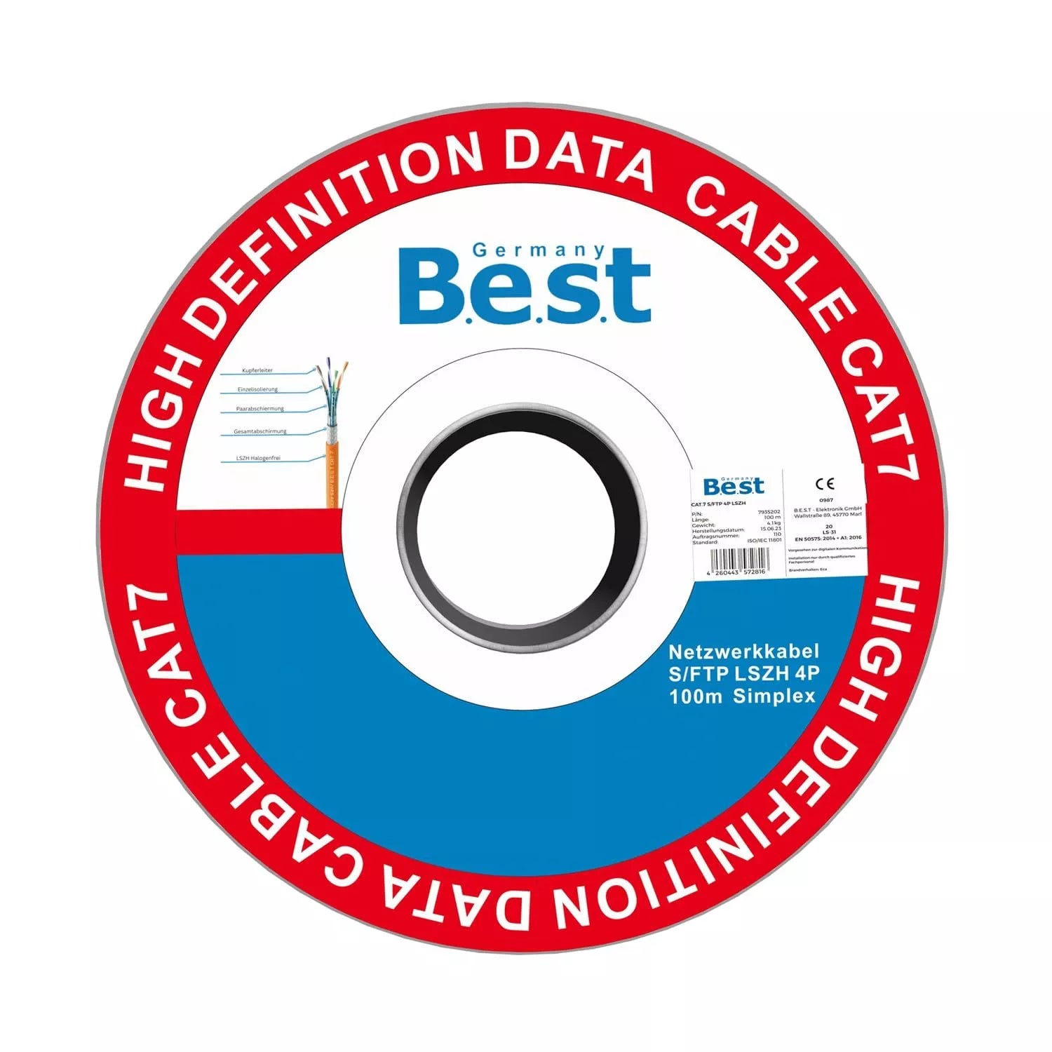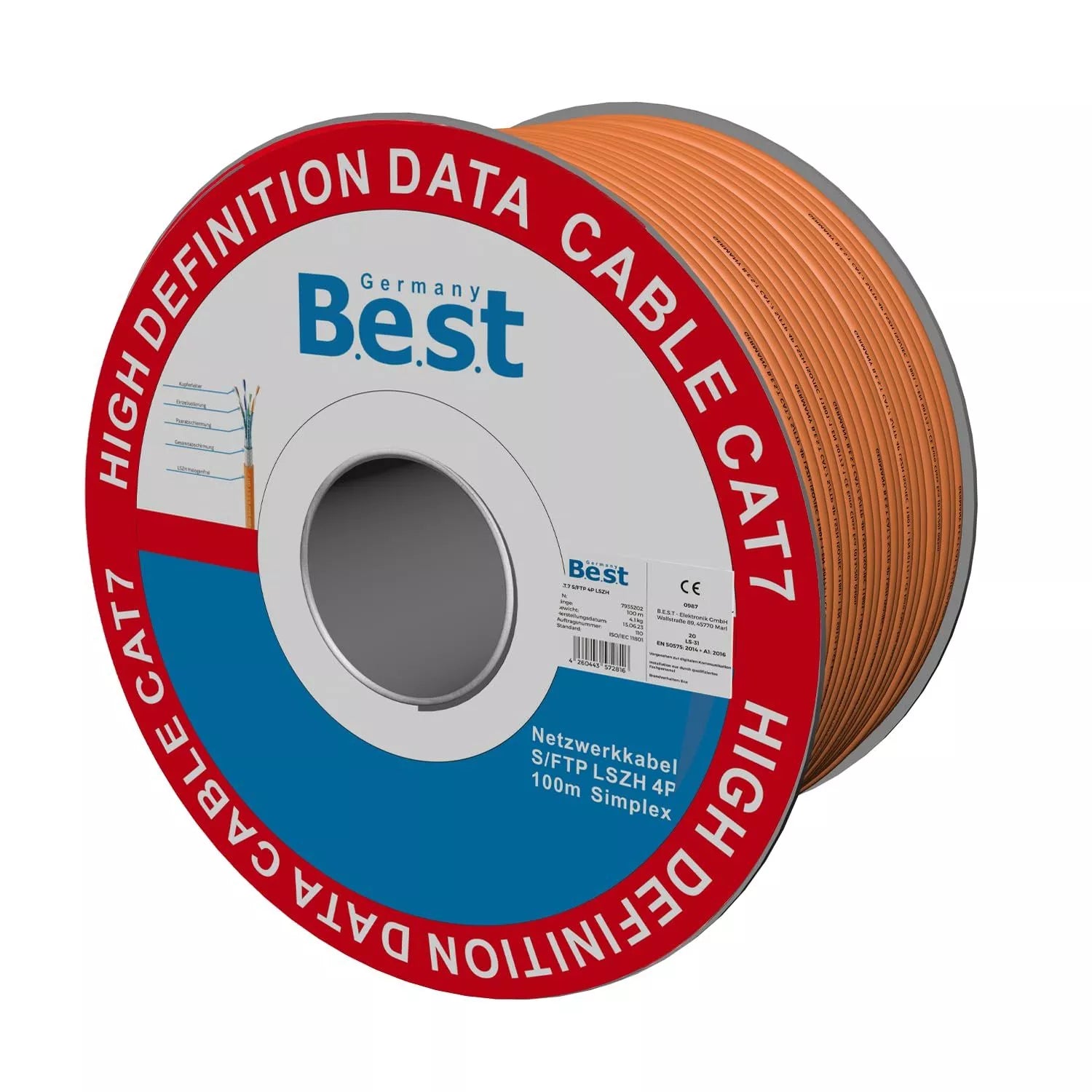 Germany B.e.s.t CAT.7 100m Simplex Verlegekabel BEST Gigabit Netzwerkkabel KUPFER Halogenfrei PIMF POE 10Gbit